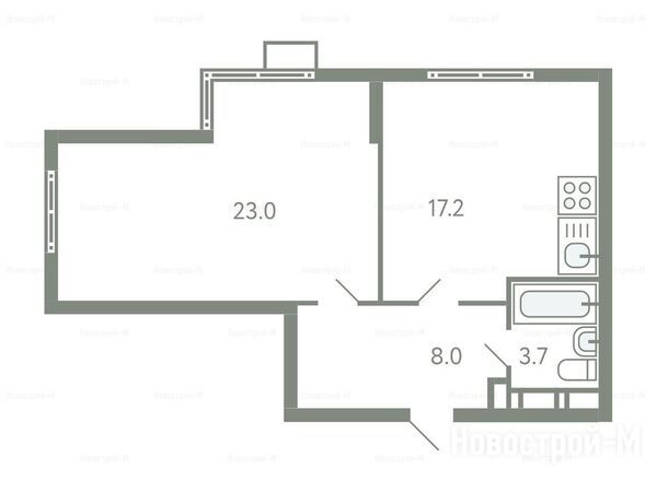 Площадь однокомнатных квартир в продаже начинается от 35,7 кв. м. Это жилье с изолированной спальней, полноценной кухней в 10–16 кв. м, совмещенным санузлом. Есть уникальные варианты, в которых окна спальни и кухни выходят на противоположные стороны света. Самая большая «однушка» в проекте имеет площадь 48,1 кв. м.