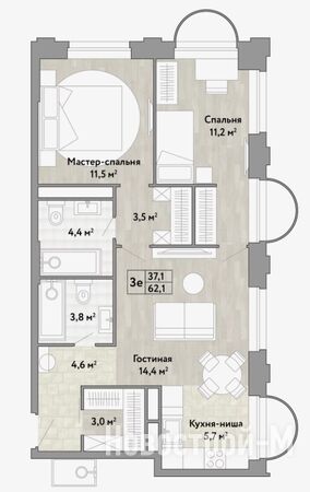 - различные планировки — от студий до квартир с тремя спальнями и кухней-гостиной;