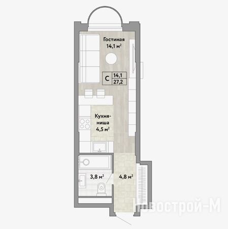 В каждой студии предусмотрена ниша в прихожей. 1-комнатные квартиры спроектированы преимущественно в евроформате, в каждой есть ниша под гардероб или отдельная гардеробная. Имеются планировки с мастер-спальней с собственной гардеробной. Планировки — линейные и угловые, с увеличенным количеством окон в кухней-гостиной или спальне.
