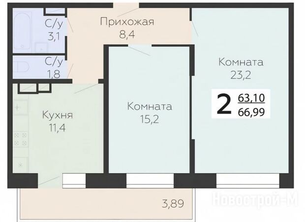 В проекте предлагают планировочные решения для разного состава семьи — однокомнатные, двухкомнатные и трехкомнатные квартиры линейного, углового и распашного типа. Совсем маленьких студий в этом ЖК не будет. Площадь жилых помещений начинается от 37,3 кв. м. Самая просторная квартира в проекте имеет 3 изолированные спальни, 3 санузла и просторный балкон, а ее общая площадь составляет 103 кв. м.