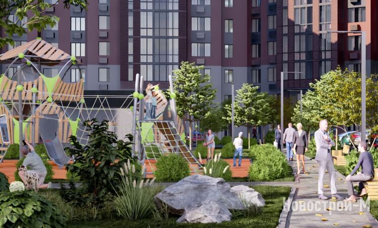 Жилой комплекс располагается на участке площадью 3,2 га, значительную часть этой территории займет приватный внутренний двор, в котором будет все необходимое, чтобы дети и взрослые проводили больше времени на улице. Во дворе установят современный детский игровой городок, спортивное оборудование, лавочки. Также там будут дорожки для прогулок и площадка для командных игр: футбола и баскетбола. Особую атмосферу создадут растения, высаженные в соответствии с ландшафтным дизайн-проектом.