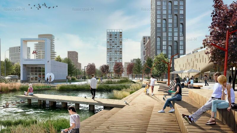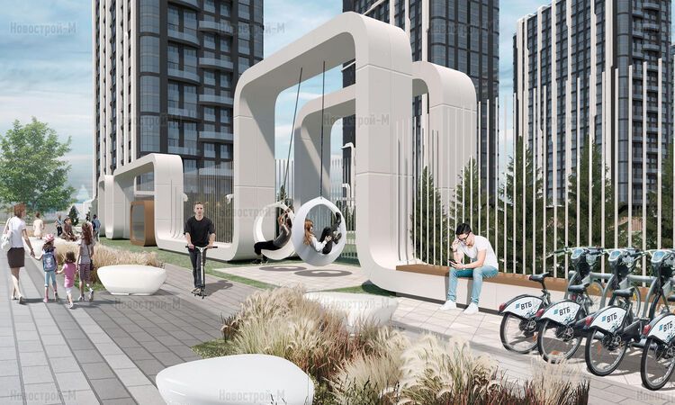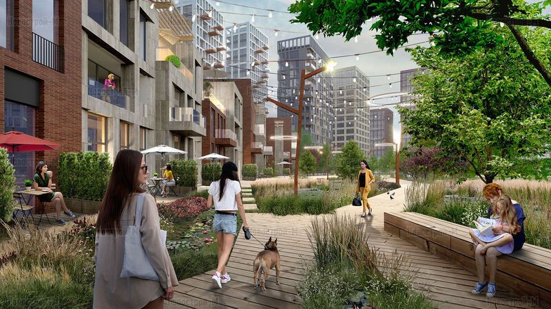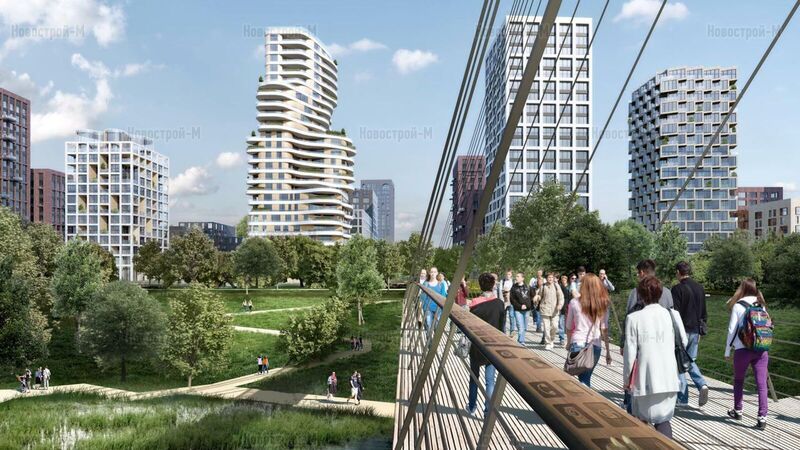 Собственная инфраструктура проекта самодостаточна: здесь построят детские сады и школы, кафе и супермаркеты, фитнес-центры. Это важно, поскольку от соседних районов новостройка отделена парками и рекой, дойти пешком до школы или супермаркета достаточно трудно.