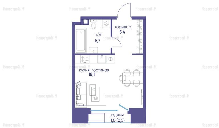 В большинстве квартир (в том числе в студиях) есть лоджии или балконы. Площадь кухонь даже в традиционных планировках — не меньше 12,9 кв. м. Уже в 1-комнатных лотах есть варианты с гардеробными.