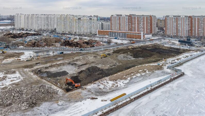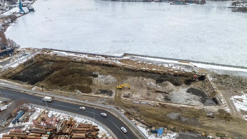 Мы посетили стройплощадку ЖК Portland в конце января 2023 года, когда велись работы на котловане.
