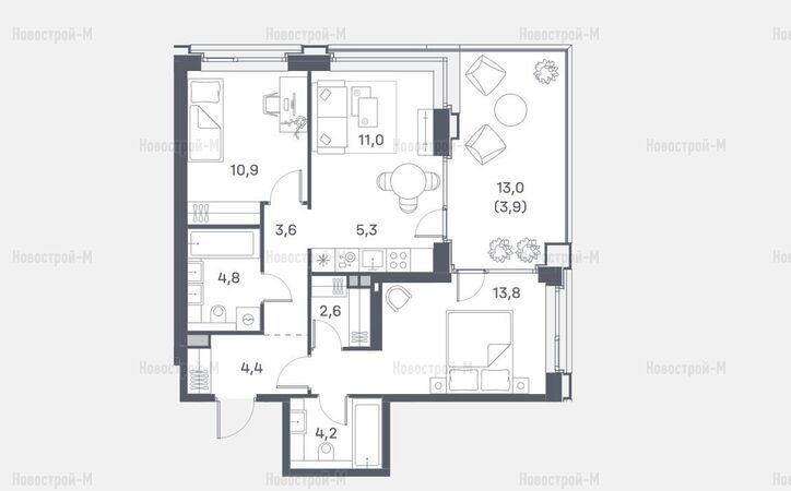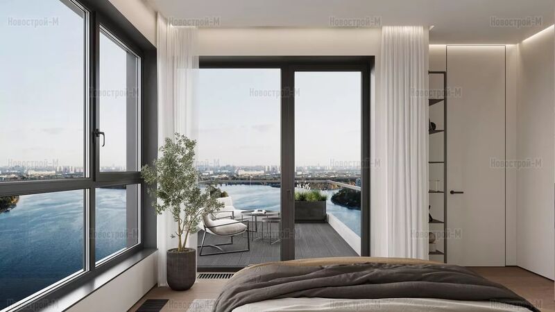 Есть квартиры с панорамными окнами даже в ванной комнате. Среди редких форматов также «двушки» с угловым остеклением, «парящие» над водой балконы.