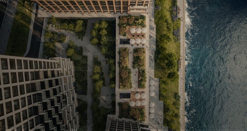 Комплекс займет территорию более 400 га с прямым выходом к Москве-реке. У жителей появится собственный участок благоустроенной набережной протяженностью 400 метров с понтонным бассейном под открытым небом, променадом, зонами для детских игр и спорта. Внутренние дворы превратятся в приватное зеленое пространство. На стилобатах появятся цветущие сады, террасы с шезлонгами, площадки для йоги и лекций, коворкинг.