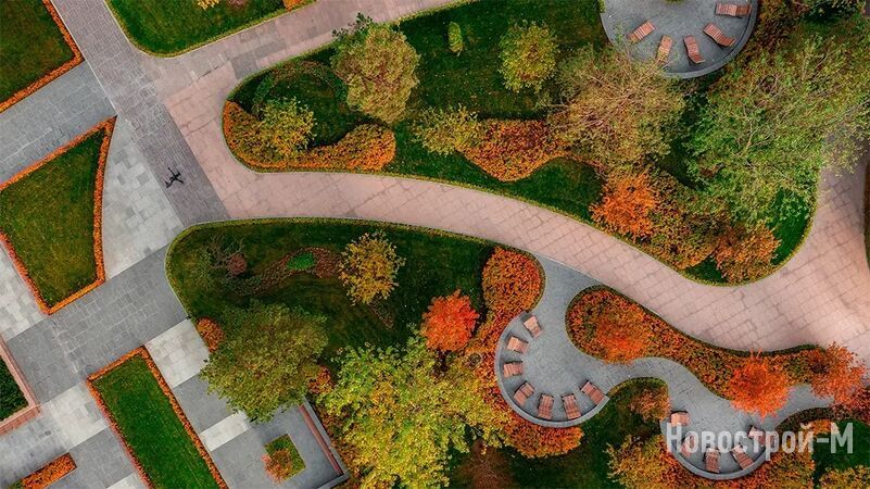 Площадь квартала составляет 11,4 га, из них 5,5 га займут парковые пространства. 3 га занимает частный парк по проекту ландшафтного бюро GreenHance, которые вдохновлялись знаменитым «Центральным парком» Нью-Йорка. Для резидентов продуманы прогулочные аллеи с арт-инсталляциями и фонтан.