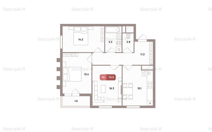 Площади двухкомнатных квартир варьируются от 60 до 67,6 кв. м, трехкомнатных — от 78 до 80,2 кв. м. Улучшенные и европейские планировки делают помещения максимально функциональными. Каждый квадратный метр можно использовать с пользой, а расположение комнат отвечает наиболее распространенным сценариям жизни.
