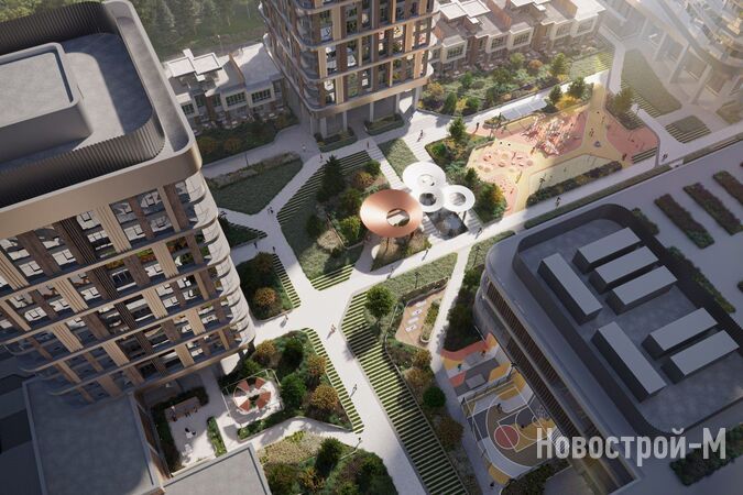 Еще одним огромным плюсом проекта является его инфраструктура. Приватный двор с разнообразием зон, магазины, кафе и прочие заведения на первых этажах домов, насыщенная спортивная инфраструктура.