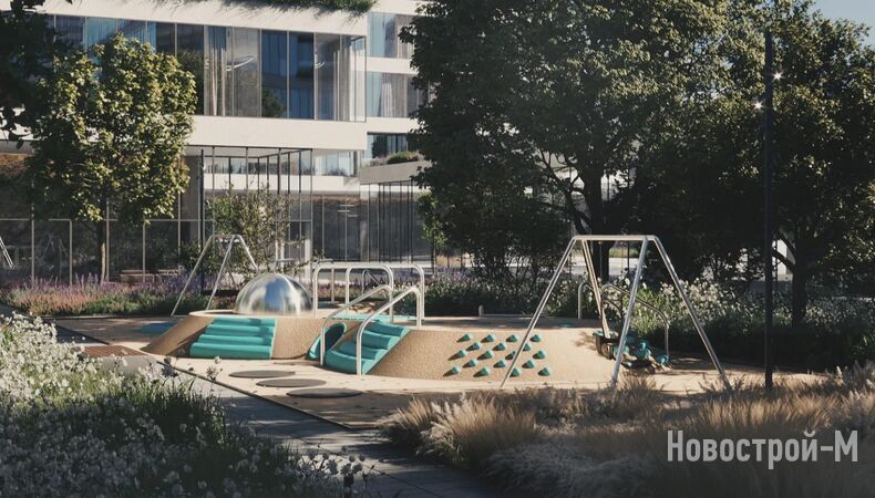 На территории появятся детские и спортивные площадки в сдержанных природных тонах. Наполнение и сценарии детских площадок разрабатывались с привлечением психологов и специалистов по раннему развитию. Площадки разделены по возрастам — для самых маленьких и для детей от 3 лет с горками, тоннелями, игрушечным скалодромом и «хитроумными тренажерами» для тренировки слуха и тактильной системы.