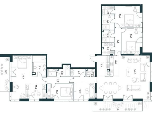 Во всех квартирах спроектированы просторные кухни-гостиные, гардеробные и постирочные. В квартирах «евро-3» и «евро-4» предусмотрено наличие минимум одной мастер-спальни и не менее 2 санузлов. Есть лоты с балконами, лоджиями, угловым остеклением, окнами в гардеробных. Высота потолков в квартирах от 3,6 метра, а в пентхаусах до 7 метров.