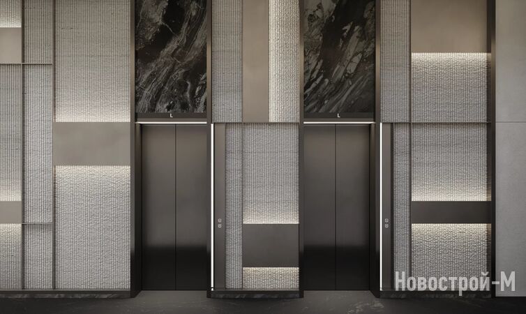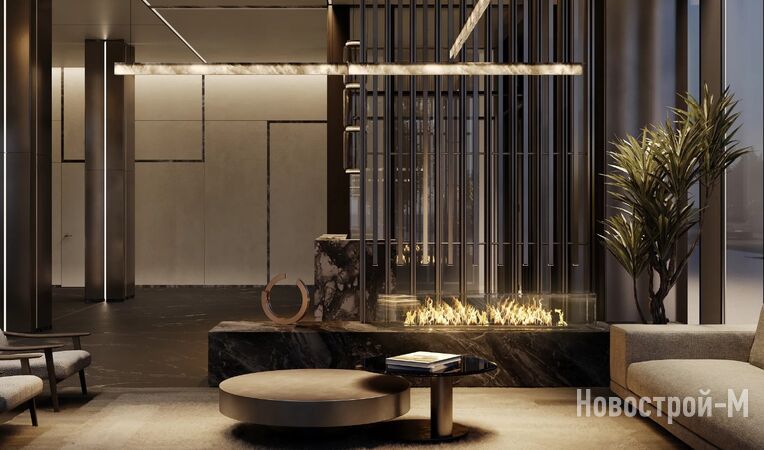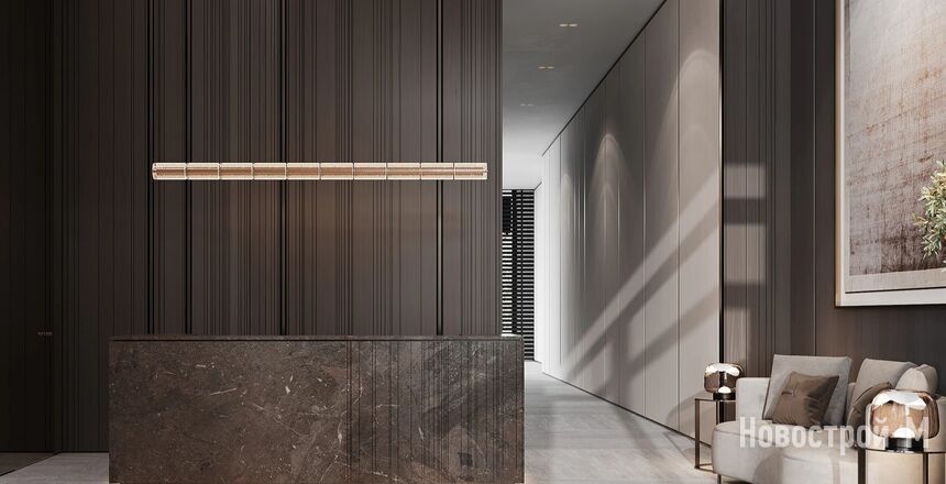 Дизайн лобби создан по проекту международного бюро WNGB (Южная Корея) и архбюро Syntaxis.