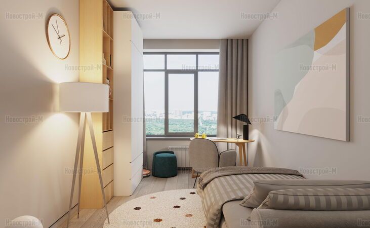 1-комнатные лоты в продаже по факту являются евродвушками со спальней и кухней-гостиной, но в вариантах меньшей площади метраж кухни-гостиной может быть небольшим для евроформата — от 14,5 кв. м. Есть варианты с гардеробными в спальне, угловыми окнами эркерного типа.