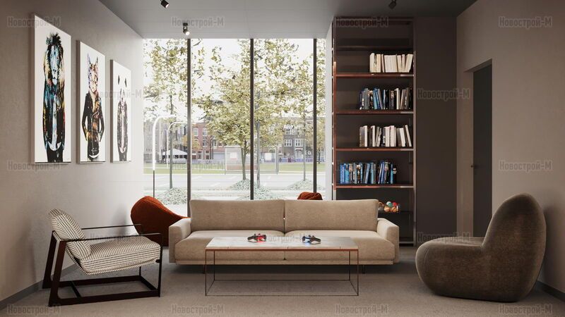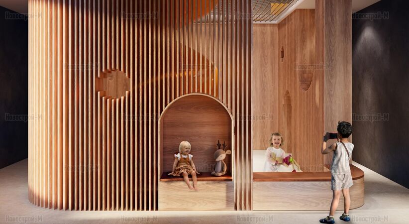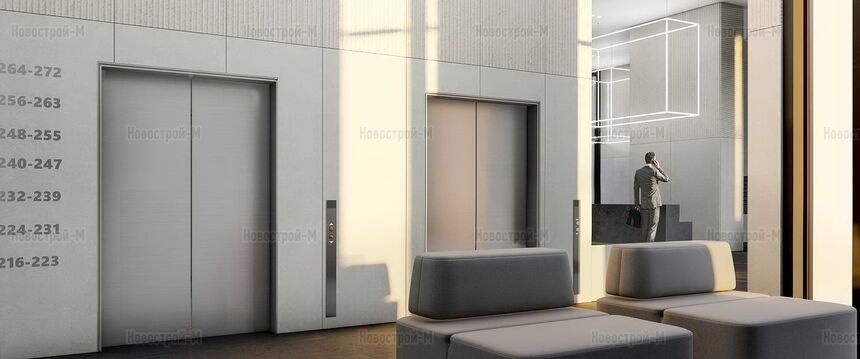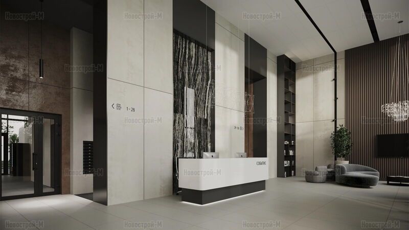 В двусветных лобби с авторскими интерьерами разместятся стойки ресепшн, мягкие зоны ожидания, биокамины, пикпойнты и цифровые почтовые ящики, колясочные, гостевые санузлы, помещения для мытья лап домашним животным после прогулок.