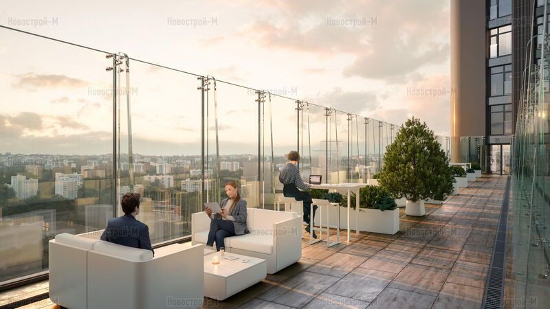• «Событие-4»: sky-мосты с лаунжами и коворкингами; sky-парк с тренажерами, беговыми и прогулочными дорожками, лаунж-зонами; в квартирах все окна – в пол;