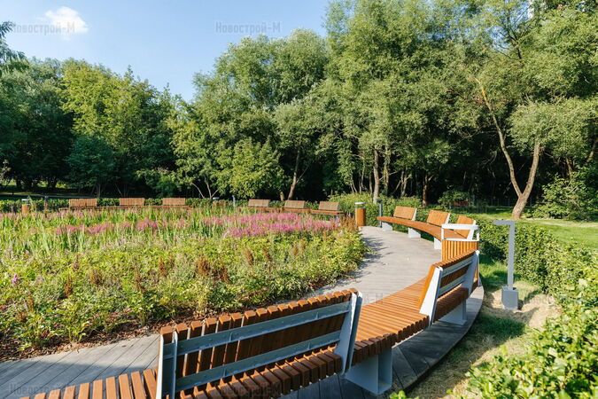 Больше половины территории жилого комплекса займет собственный парк — 24 га. Для посещения уже открыты 12,4 га природного парка возле реки Раменка.