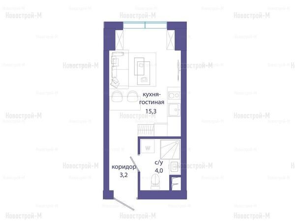 Студии достаточно типовые, их площадь — от 22,9 до 31,8 кв. м, они различаются только площадью, вариантов с двумя окнами нет.