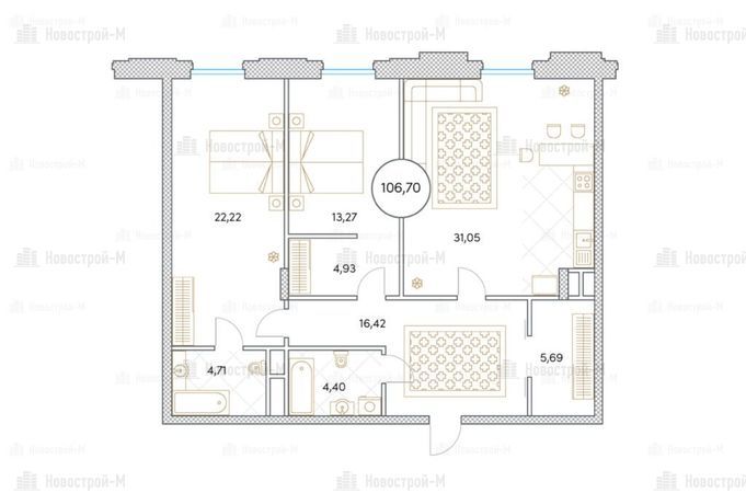 Площади апартаментов варьируются от 41 до 360 кв. метров. Все варианты жилья сдаются с готовой отделкой «под ключ».