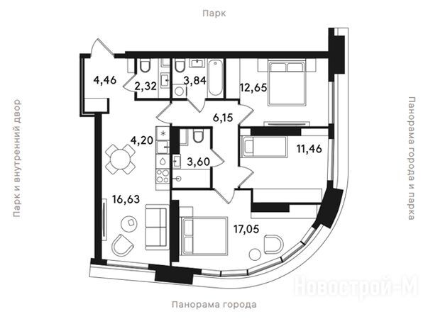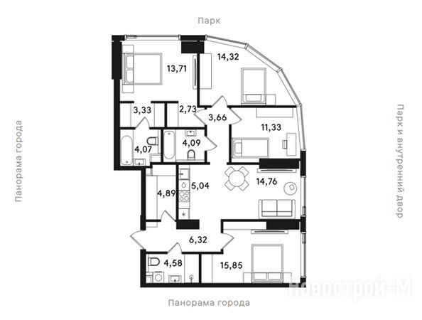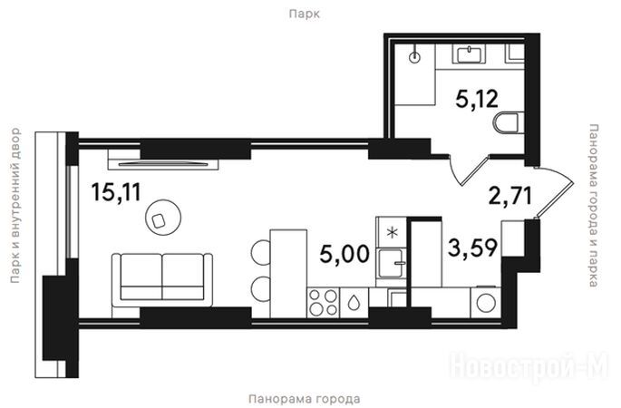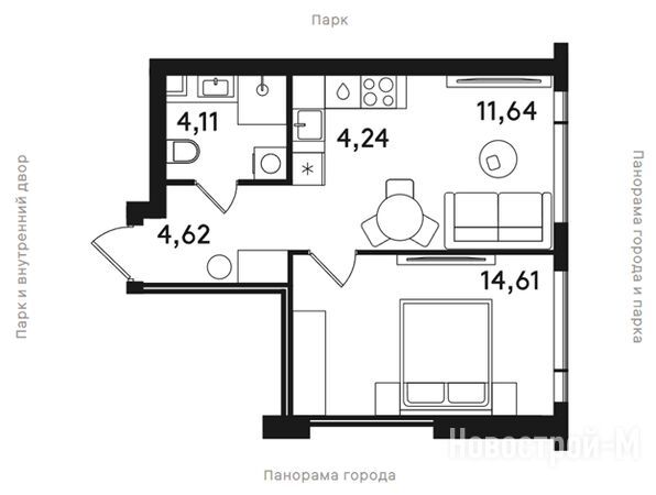 Просторные квартиры – несомненный плюс, который привлечет семейных покупателей. Также аргументом для них может стать безопасность и хорошая экология района, а также большой парк в шаговой доступности.