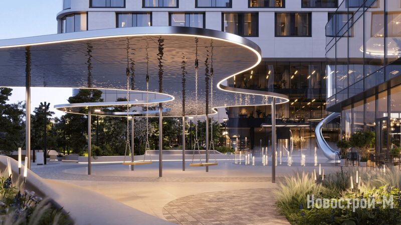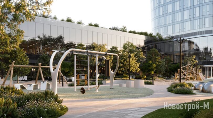 Благоустройством ЖК Solos занималось бюро Scape. Внутренняя территория – это закрытый зонированный сад. Во дворе разместятся спортивная и детская площадка (комплекс с горкой, батут, качели, сетки). В центре двора будет сухой фонтан и арт-объект, а вокруг – места для тихого отдыха.
