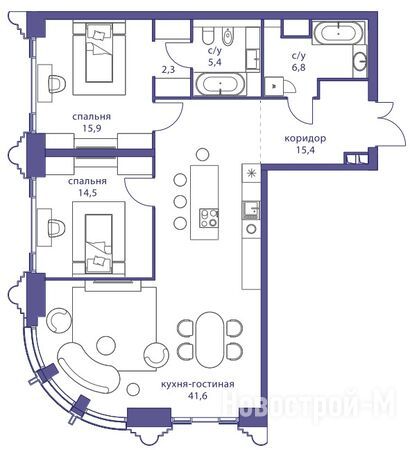 «Дом Лаврушинский» строит по адресу Б. Толмачевский пер., 5 девелопер Sminex. Здесь появятся три монолитно-кирпичных клубных дома и шесть эксклюзивных приватных вилл с собственными патио. Сдать ЖК планируется в IV кв. 2024 года. В этом проекте цены начинаются от 175,6 млн рублей. За эти деньги можно приобрести квартиру площадью 67 кв. м. В планировке: мастер-спальня, гардеробная, гостевой санузел и кухня-гостиная площадью 29,9 кв. м.