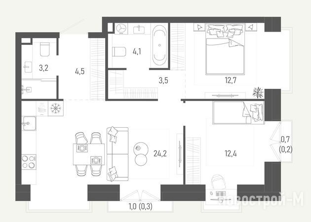 Купить квартиру можно в ипотеку, в том числе по программам семейной ипотеки по ставке от 3,5% и субсидированной ипотеки по ставке от 8% на 7 лет. Также доступны рассрочка с первоначальным взносом от 30%, 100% оплата и трейд-ин.