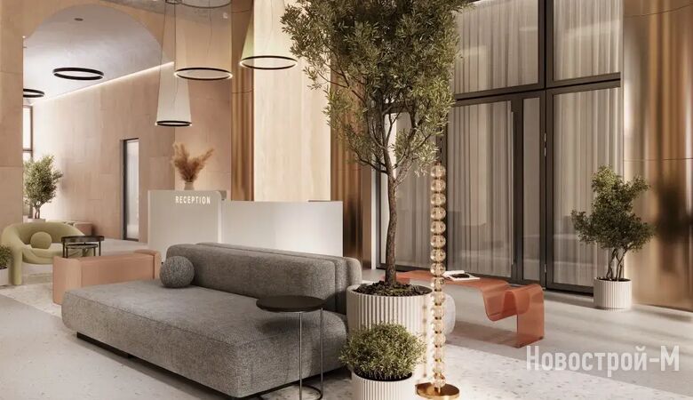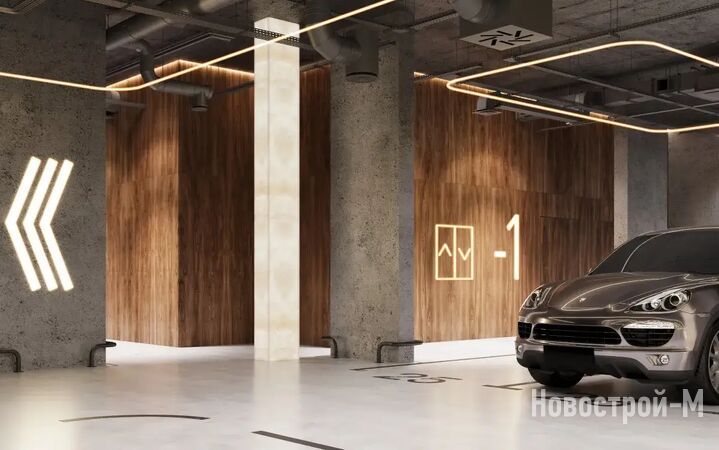 В лобби предусмотрены лаундж-зоны с диванами, помещения охраны, колясочные, комнаты матери и ребенка. На первых этажах расположится зона ретейла. Подземный паркинг рассчитан на 129 машино-мест, включая зависимые места и места для пользования инвалидами и другими маломобильными жильцами. Также на подземном уровне разместятся кладовые помещения.