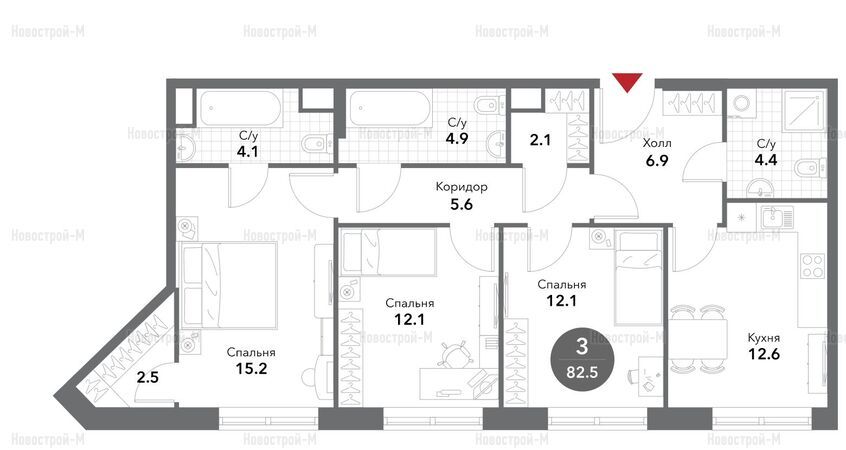 В настоящее время в продаже представлена недвижимость в трех корпусах – №№2, 3, 4. Минимальная площадь студий – 22,6 кв. м, а максимальная из тех, что сейчас находятся в продаже, – 140,2 кв.м – это пятикомнатные квартиры. Особенность пятикомнатных квартир – наличие открытой террасы, кухни-гостиной, мастер-спальни с собственным санузлом и гардеробной комнатой. Высота потолков – от 3,3 кв.м. Самых просторных квартир – видовых пентхаусов площадью до 200 кв. м – пока нет в продаже. Чистовая отделка в квартирах и апартаментах не предусмотрена.