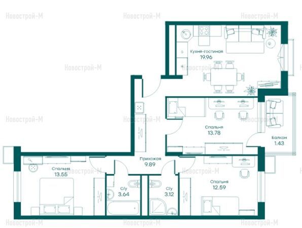 Для покупки там сегодня доступны 1-,2- и 3-комнатные квартиры. Самый бюджетный вариант – это «однушка» площадью 39,2 кв. м за 3,4 млн рублей, самый дорогой – 3-комнатная квартира метражом 76 кв. м за 5,9 млн рублей.