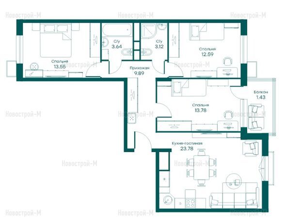 Все планировки можно посмотреть на поэтажных планах на сайте Новострой-М. Там же вы сможете оценить уровень инсоляции в новой квартире и узнать, на какую сторону света выходят окна.