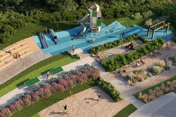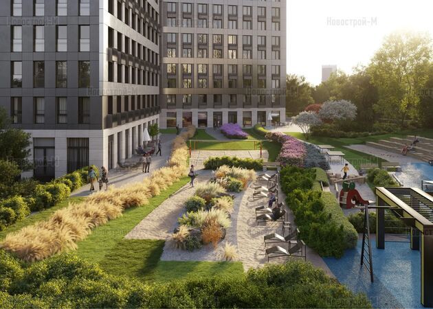 На внутренней территории ЖК будет 10 различных зон для активного времяпровождения и тихого отдыха. Центральная площадь с видовой площадкой разместится на кровле стилобата. В южной и восточной частях двора появятся палисадник и сенсорный сад, мини-лес с вязами, клёнами, рябиной и сиренью, лаундж-зона с «главным деревом». Для общественных мероприятий будет создан многофункциональный амфитеатр. Также появятся детские площадки с безопасным покрытием, зоны для занятий спортом и игры в волейбол.
