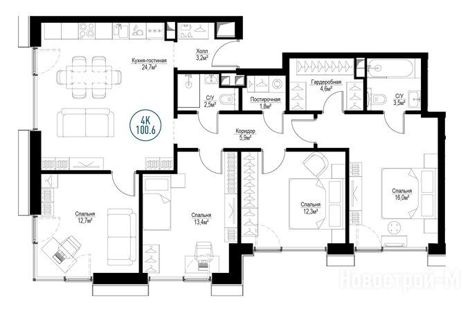 Жилой фонд ЖК «Метрополия» включает в себя квартиры площадью от 37,4 до 104 кв. метров, среди которых однокомнатные, двухкомнатные, трехкомнатные и четырехкомнатные варианты. В проекте также есть студии (26,7–26,9 кв. метров), но их немного — не более двух на этаже и не в каждом корпусе, поэтому такие квартиры быстро уходят с витрины.