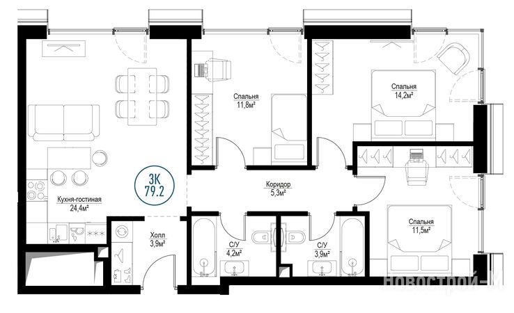 Все квартиры реализуются с фирменной предчистовой отделкой MR Base, включающей в себя выполнение черновых работ, разводку коммуникаций и электрики, выравнивание стен и стяжку пола, подготовку поверхностей к финишной отделке.