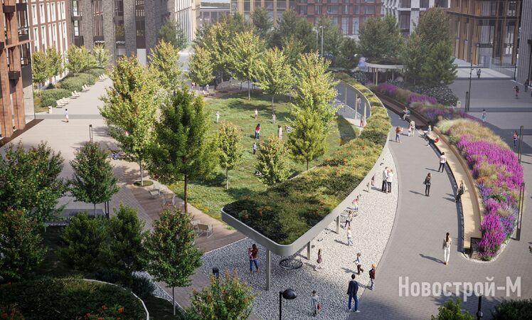 На территории ЖК запланировано много растений, здесь даже появятся небольшие березовые рощи и колоновидные тополя вдоль ограды. Состав цветников продуман таким образом, чтобы они оставались эстетичными с весны до поздней осени.