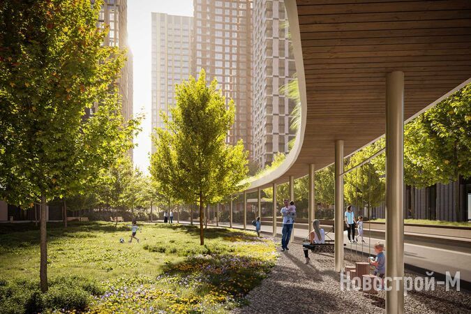На территории «Метрополии» созданы зоны с верандами и кафе для спокойного отдыха и общения, проложены дорожки для неспешных прогулок и утренних пробежек. Для занятий спортом предусмотрена зона с турниками и тренажерами. Провести время активно в компании друзей можно на площадках для игры в стритбол, баскетбол, петанк или играя в пинг-понг.