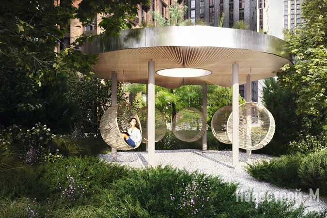 Идея объединения продолжается и в благоустройстве территории комплекса — на небольшом участке земли предусмотрены зоны для жителей разного возраста и с разными увлечениями. Проект разработан специалистами бюро UTRO, которые стремились выдержать баланс между потребностями жителей и природным наполнением двора.