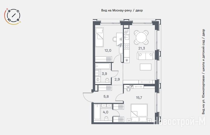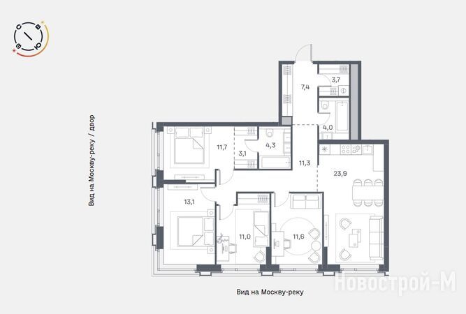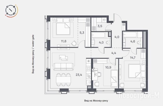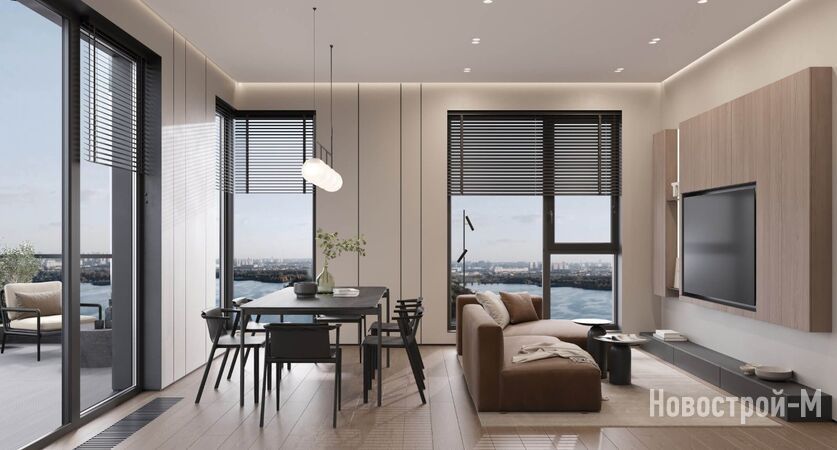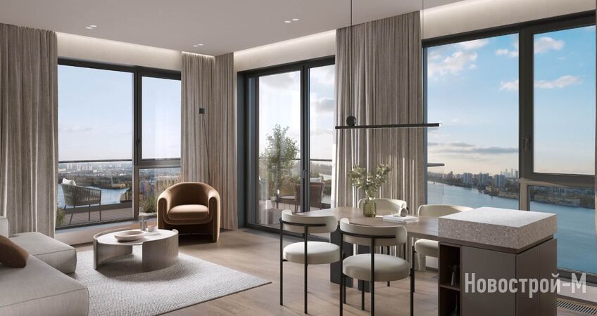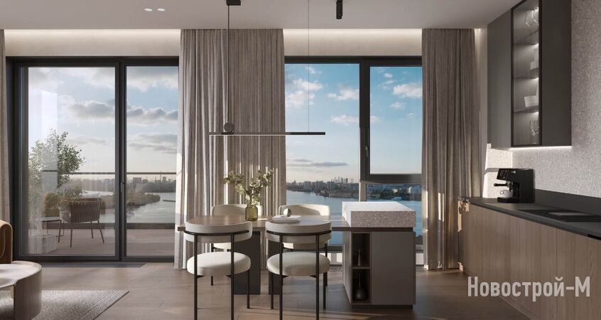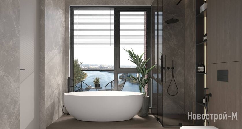 Квартиры с большим количеством комнат тоже спроектированы в евроформате, помимо лотов с мастер-спальнями и гардеробными есть планировки с балконами. Можно выбрать вариант с видовой ванной комнатой, откуда можно будет любоваться речными панорамами.