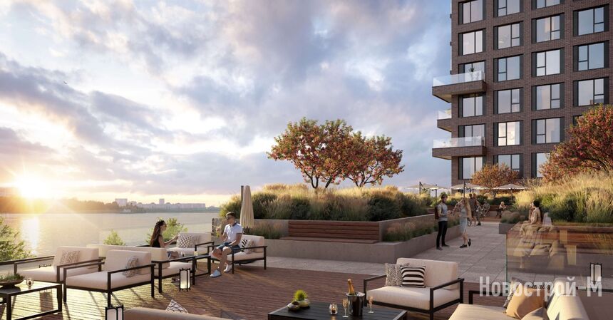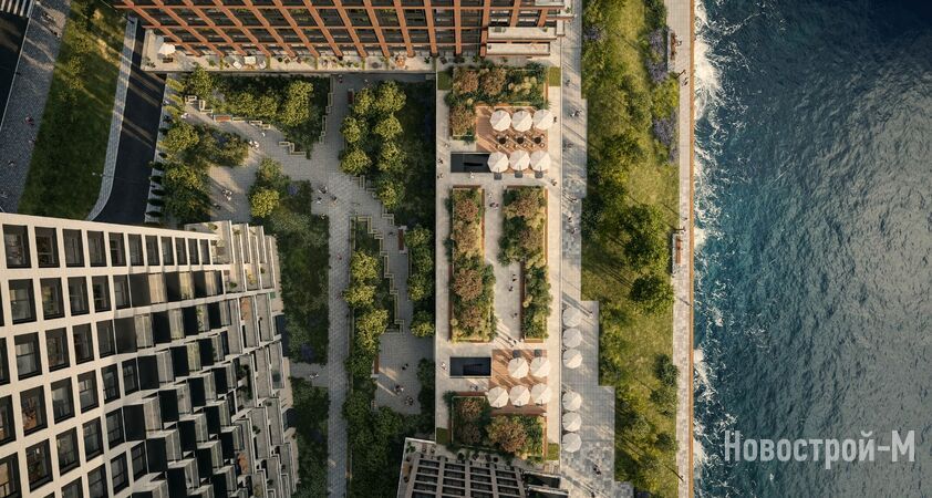 Компенсировать недостаток зелени также помогут цветущие сады на крыше стилобата в самом ЖК и озелененная набережная.