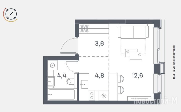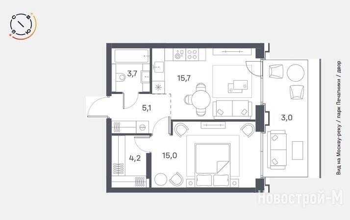 Студии достаточно однотипны, но в каждой есть ниша в прихожей под встроенный шкаф. Площадь 1-комнатных квартир в продаже — от 40,7 до 46,7 кв. м, это варианты с кухней-гостиной и помещением под кладовую или гардеробную. Есть студии с панорамными балконами.