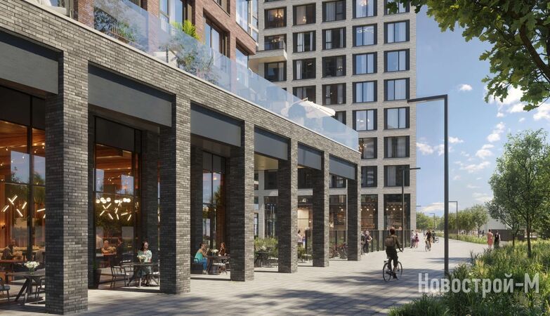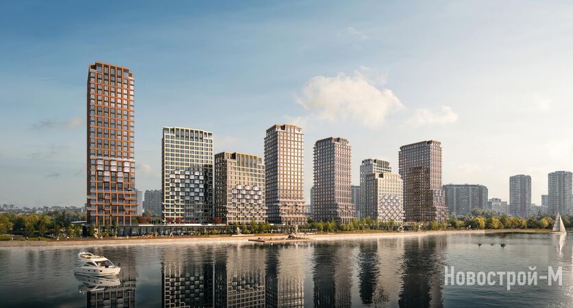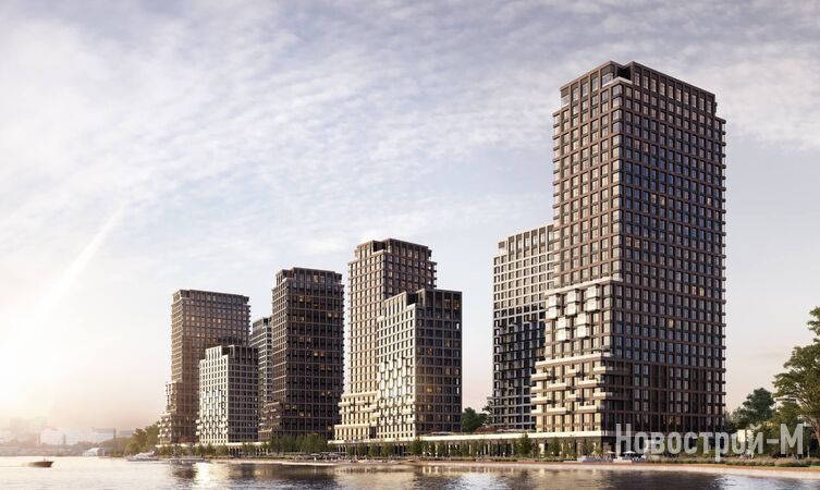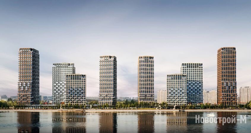 Комплекс строится на берегу реки, и 95% квартир в жилых башнях будут с видом на воду. Наружные стены домов облицованы клинкерным кирпичом теплых природных оттенков: от бежево-серого до терракотового. Особенность фасадов — шахматное расположение террас и панорамных балконов.