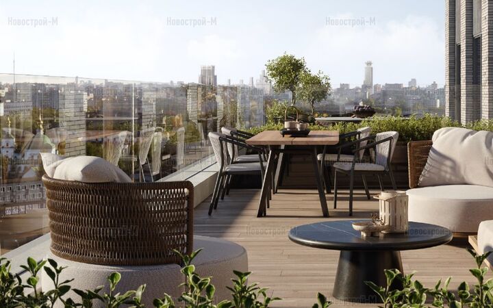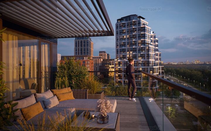 В проекте есть редкие форматы жилья: пентхаусы, квартиры с видовыми террасами, вторым светом, угловым остеклением, окном в ванной, квартиры на 1 этаже с высоким потолком и патио.