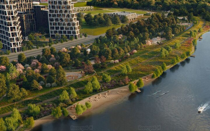 Более 17 га вдоль берега Москвы-реки займет экопарк Primavera и вау-набережная от архитекторов Wowhaus. Появится дизайнерское озеленение — высадят более 1000 взрослых деревьев и столько же кустарников, создадут пешеходный маршрут протяженностью в 1,5 км, установят видовые качели, оборудуют спуски к воде, деревянные настилы и лестницы.
