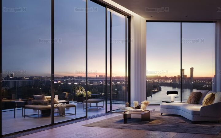 Во всех квартирах спроектированы панорамные окна с углом обзора 270 градусов. Из окон открывается вид на реку, Москворецкий природно-исторический парк, городские пейзажи.