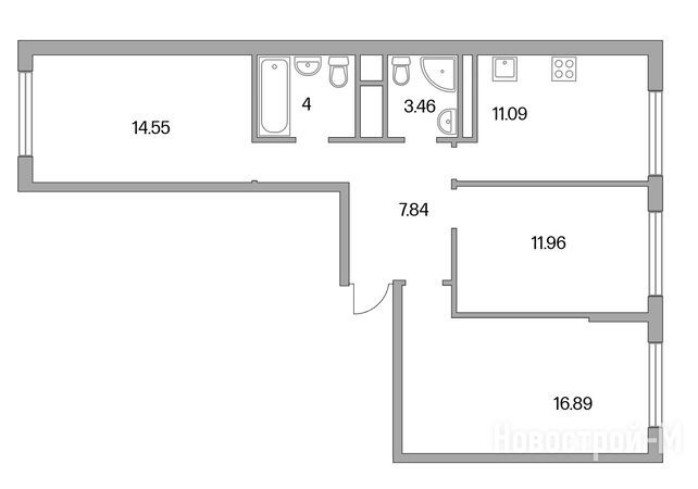 Это 16-этажная высотка на 405 юнитов площадью 22 до 25,7 кв. м. Сдаются они как в чистовой, так и черновой отделке. Срок сдачи – III кв. 2026 года. Цены начинаются от 6,9 млн рублей за студию площадью 22,58 кв.м.