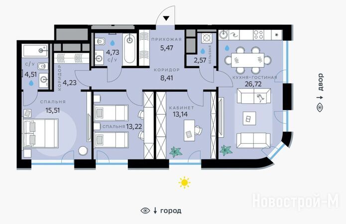 В СберСити предлагается более сотни планировочных решений, в том числе евроформата, для разного состава семьи и образа жизни.