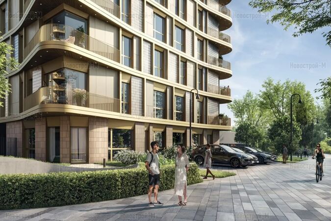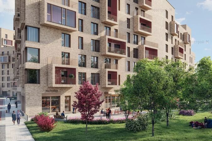Жилые кварталы возводятся по монолитно-кирпичной технологии, их средняя высота 6–10 этажей, есть отдельные здания высотой до 12–14 этажей. У каждого свой стиль, форма и отделка фасада. Цвета природные: графитный, золотой, песочный, с яркими акцентами. Здания комфорт-класса отличаются строгой геометрией, дома бизнес-класса и элитные — обтекаемыми, изогнутыми формами, будто повторяющими излучину реки. Фасады домов премиум-класса будут отделаны натуральным камнем.