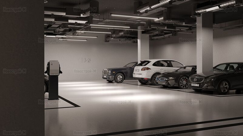 Кроме того, будет построен подземный паркинг на 253 машино-места. На каждом из его уровней запроектированы кладовые помещения (келлеры) площадью 2,7-14,9 кв. м. Также в корпусе В1 кладовки будут предусмотрены прямо на этажах, их площадь составит 3,8 кв. м.