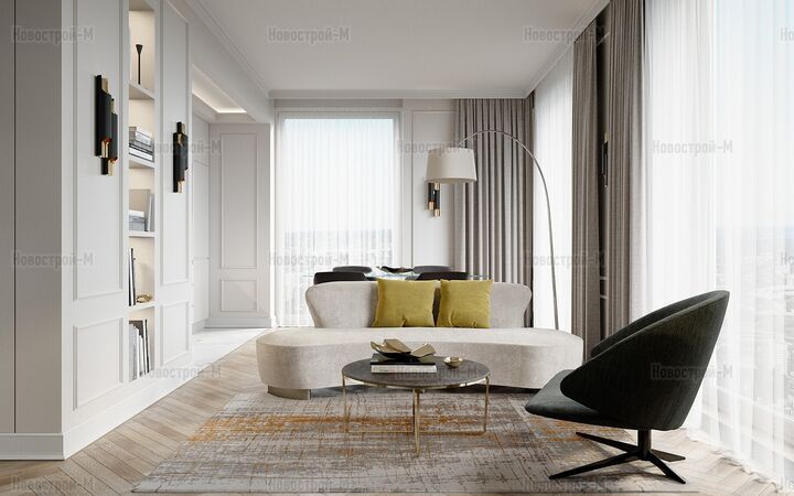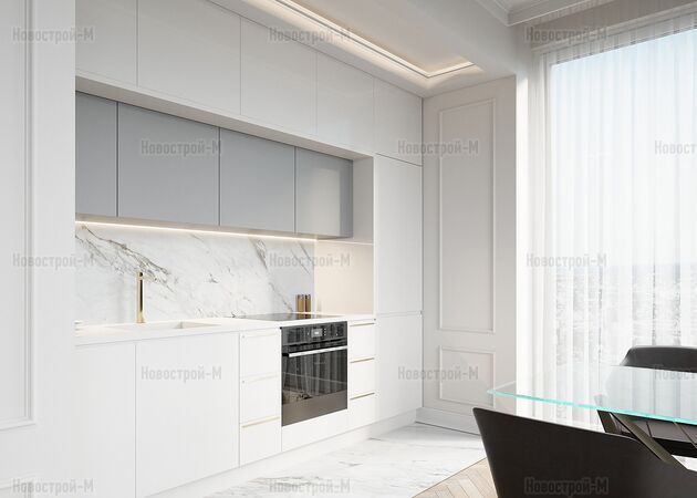Все юниты в проекте продаются с готовой отделкой. Минимальная стоимость – 39,2 млн рублей – такова цена 2-комнатных апартаментов площадью 71,1 кв. м. Лоты предлагаются с отделкой white box, однако есть возможность дополнительно заказать чистовую дизайнерскую отделку. Ввести комплекс в эксплуатацию собираются в IV квартале 2022 года.