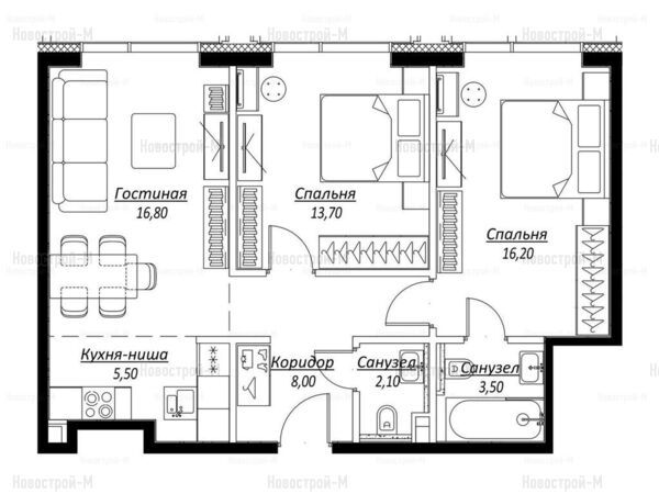 Все юниты передаются с предчистовой отделкой (white box). Во всех апартаментах SLAVA увеличенная площадь остекления и высокие потолки – от 3,1 до 3,3 м. Подробнее изучить планировки вы можете на поэтажных планах в карточке проекта на сайте Новострой-М. Там же легко узнать, на какую сторону света будут выходить окна вашего апартамента и определить уровень инсоляции.