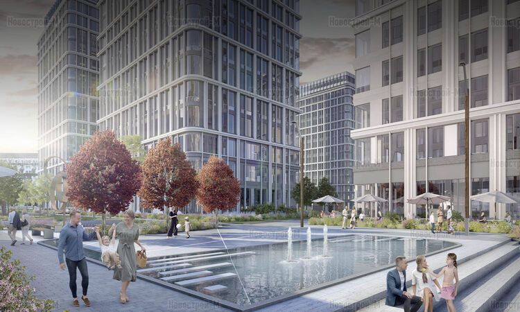 Благоустройством пространства вокруг комплекса занимается международное бюро Gillespies. На придомовой территории со временем появится сад с многолетними деревьями – каштанами, кленами, вязами. Также будет обустроена открытая оранжерея, пруд с фонтаном, беседки. Для прогулок создадут центральный променад, для занятий спортом – площадки и игровые зоны с безопасным прорезиненным покрытием, игровые зоны для детей от 3 до 10 лет.